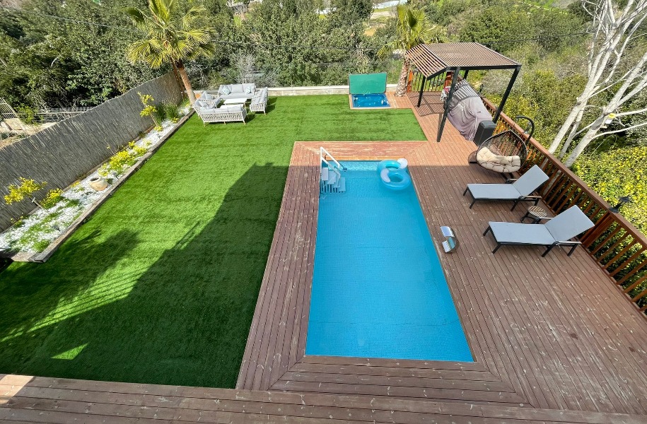 On a rare plot of approximately 650 square meters of private land (not managed), there is a spacious villa of about 320 square meters built (11 rooms) featuring generous, beautifully designed outdoor areas, with an open green view, complete privacy, and two swimming pools.