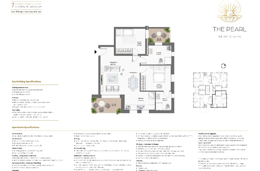 Master bedroom with attached bathroom, central air conditioning, 9000 BTU, electric shutters, smart home, underground parking + storage room + Sabbath elevator.