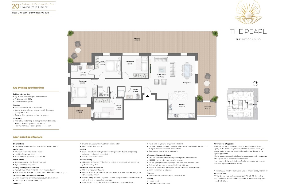 Luxury mini penthouse on the 5th floor, on Avital Street 6. 4 bedrooms including a master bedroom, 3 rooms + guest toilet, roof terrace, central air conditioning, 9000 BTU, electric shutters, smart home, underground parking + security room + Sabbath elevator.